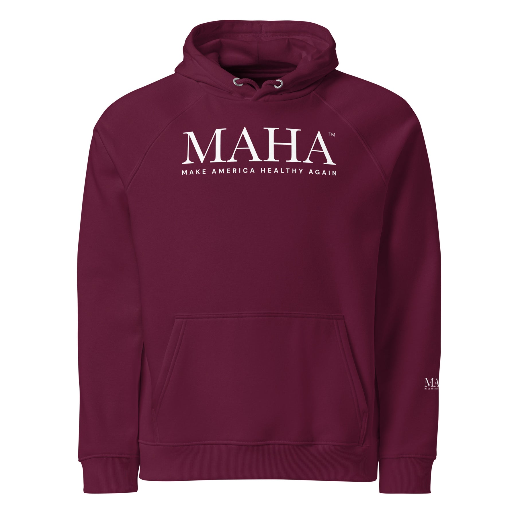 Stay warm and stand for a healthier future with the MAHA™ Unisex Eco Raglan Hoodie. Made from eco-friendly materials, this hoodie blends comfort, sustainability, and bold advocacy for positive change. ??